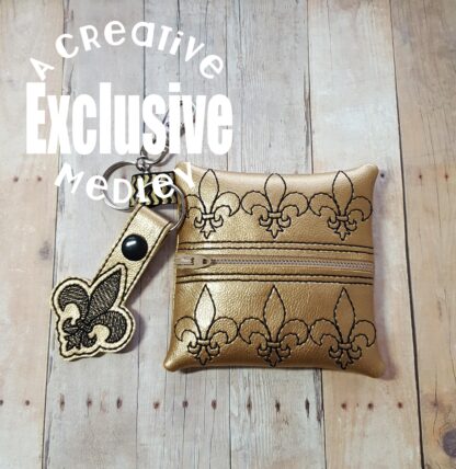 Fleur de lis Motif Zipper Bag In the Hoop – for 4×4 hoops – with bonus snaptab