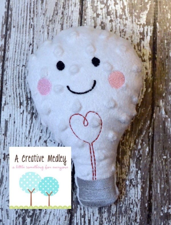 Light up your little ones life with this Lightbulb softie. In the hoop designs look complicated, but are actually a quick and easy project.