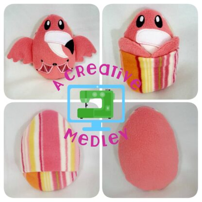 Meet Peekaboo Flamingo! He is an adorable softie on his own, but then flip the pockets to the front and he completely folds into his egg. Once you get your hands on him you won’t be able to put him down! Busy hands will keep flipping open and shut over and over. Includes regular and “vintage” fill for feet – a luxe satin or a diamond for a faster stitchout and embossed look on plush fabrics.